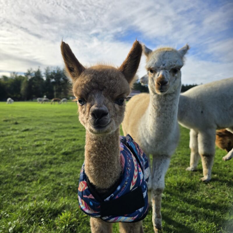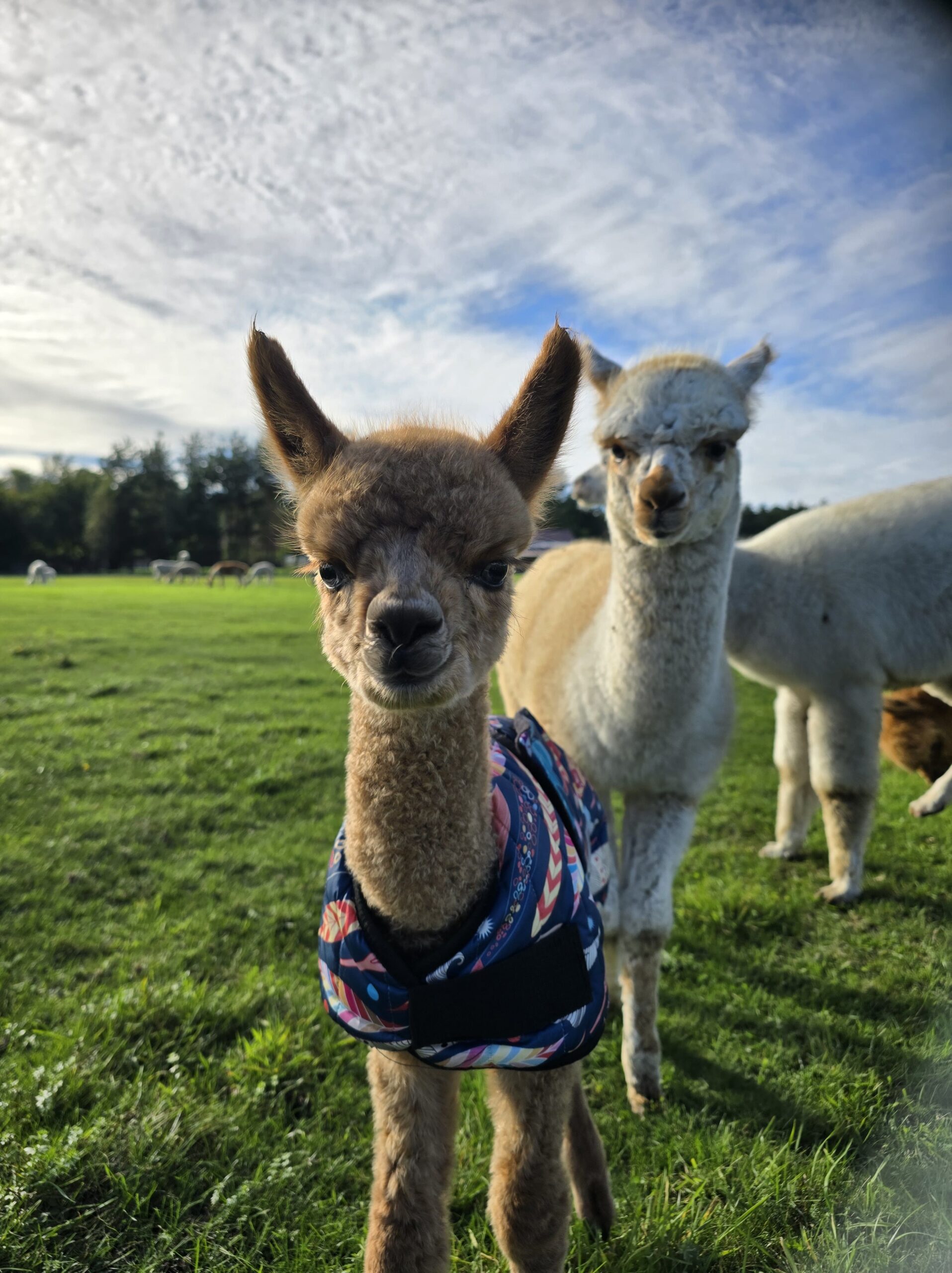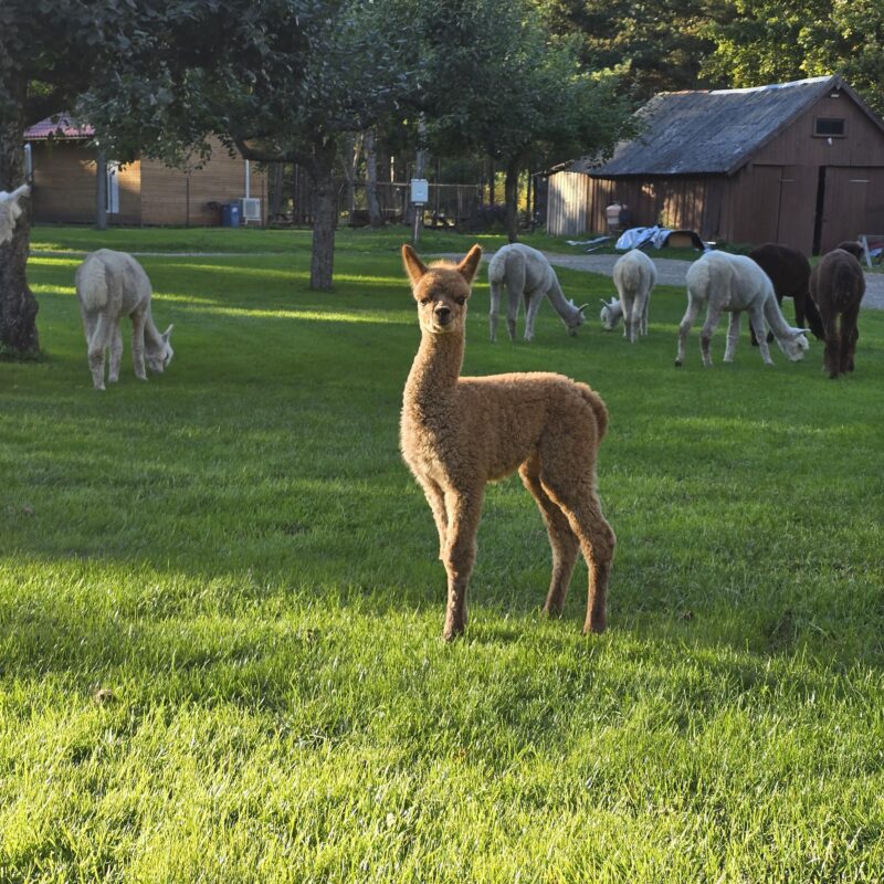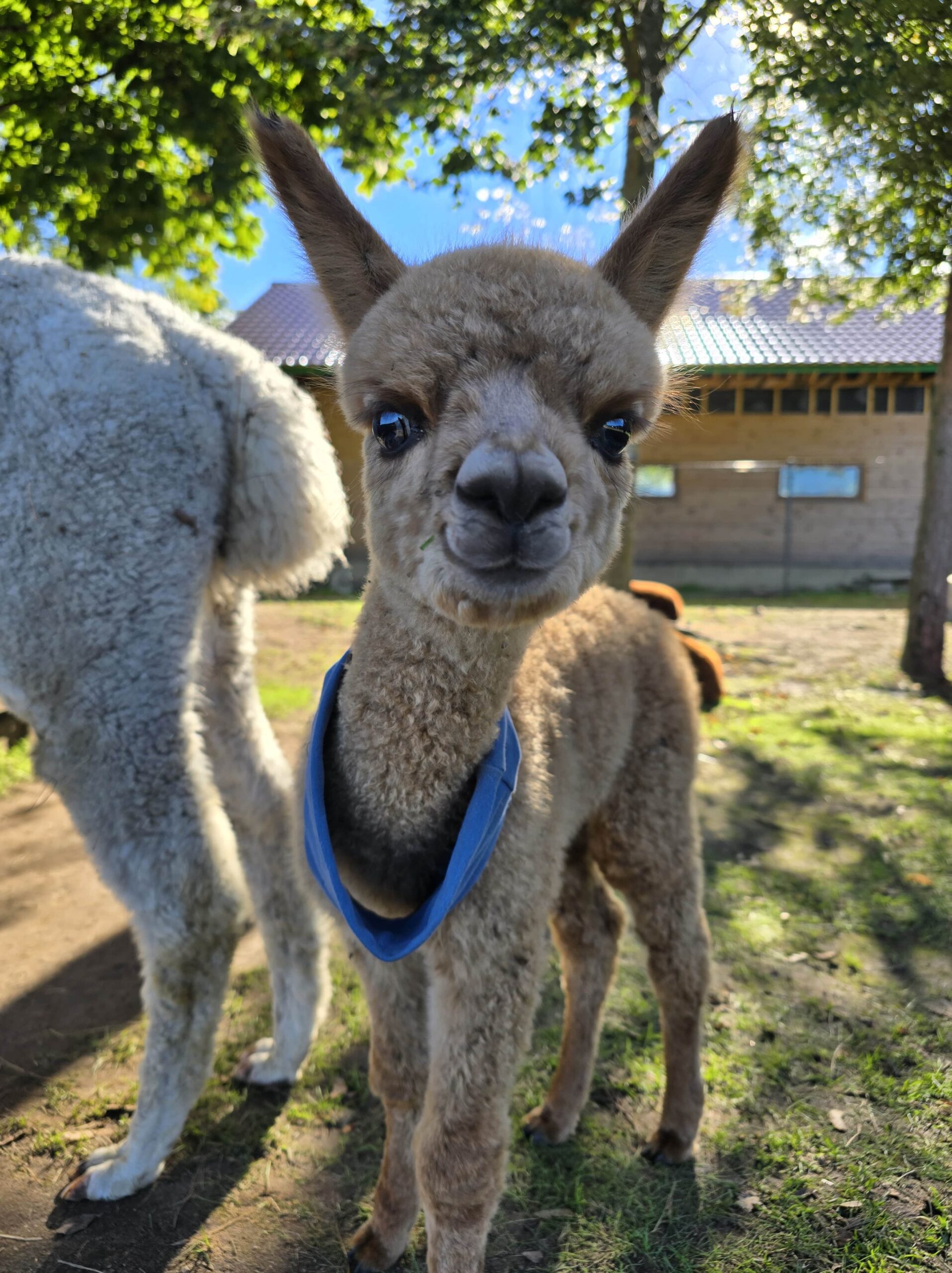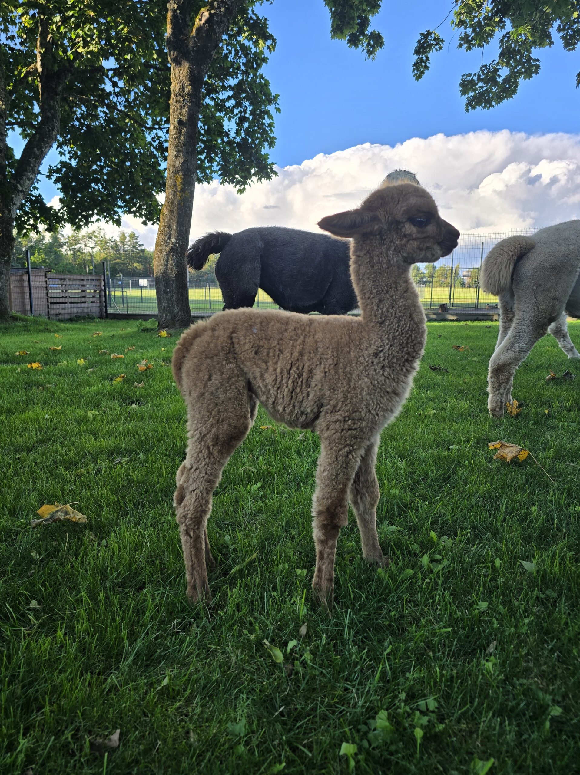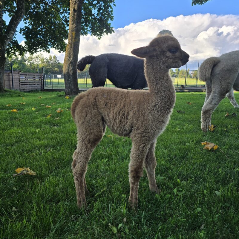 Amely labai lauktas alpakiukas mūsų ūkyje. Jos mama Alizee atvyko iš Vokietijos Sun Star alpacas ūkio, ji laukėsi Sun Star Timogen palikuonio. Amely vilnos kokybė įspūdinga, tai kone kokybiškiausias alpakiukas 2025m gimęs mūsų ūkyje.