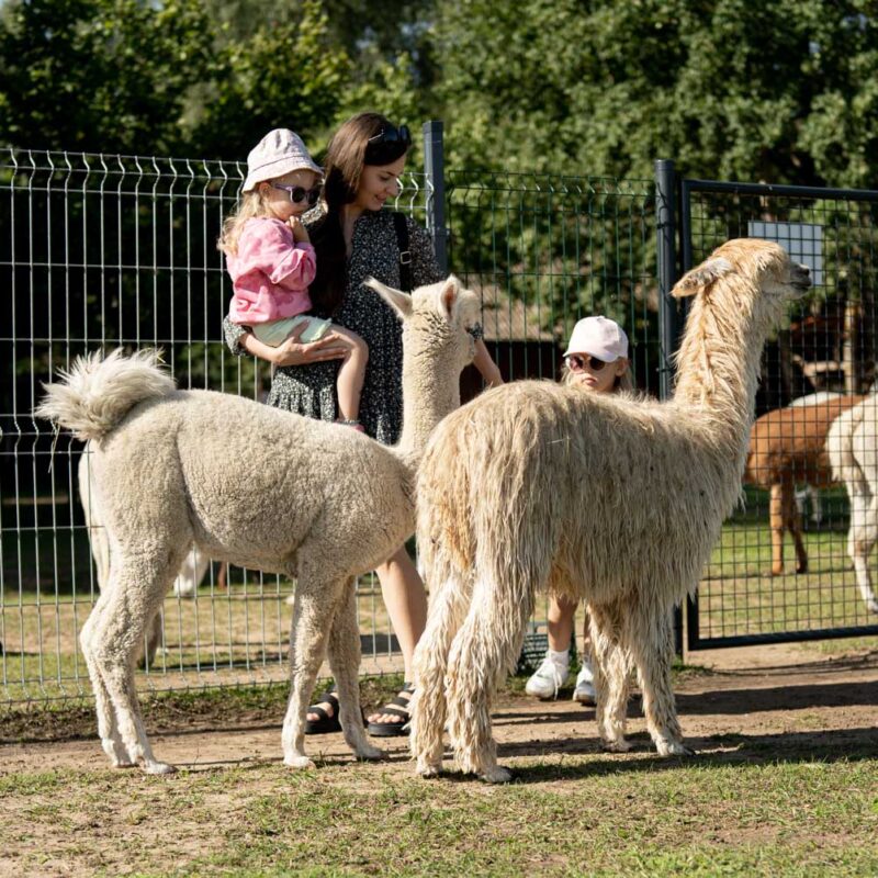 Dovanų krautuvėlėje įsigyti alpakos vilnos gaminių ir kt. Taip pat žaisti žaidimų aikštelėse.