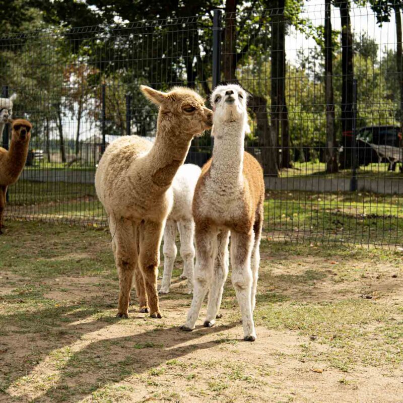 Jei oro sąlygos bus prastos, su alpakomis bendrausime jų namuose.