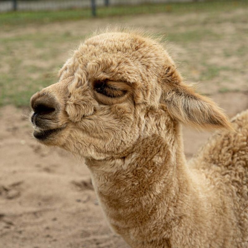 Pupsikas gimė šiemet per anksti, tad dėl jo gyvybės teko pakovoti. Bet dabar jis sveikas ir laimingas alpakiukas. Ramus, malonaus charakterio.