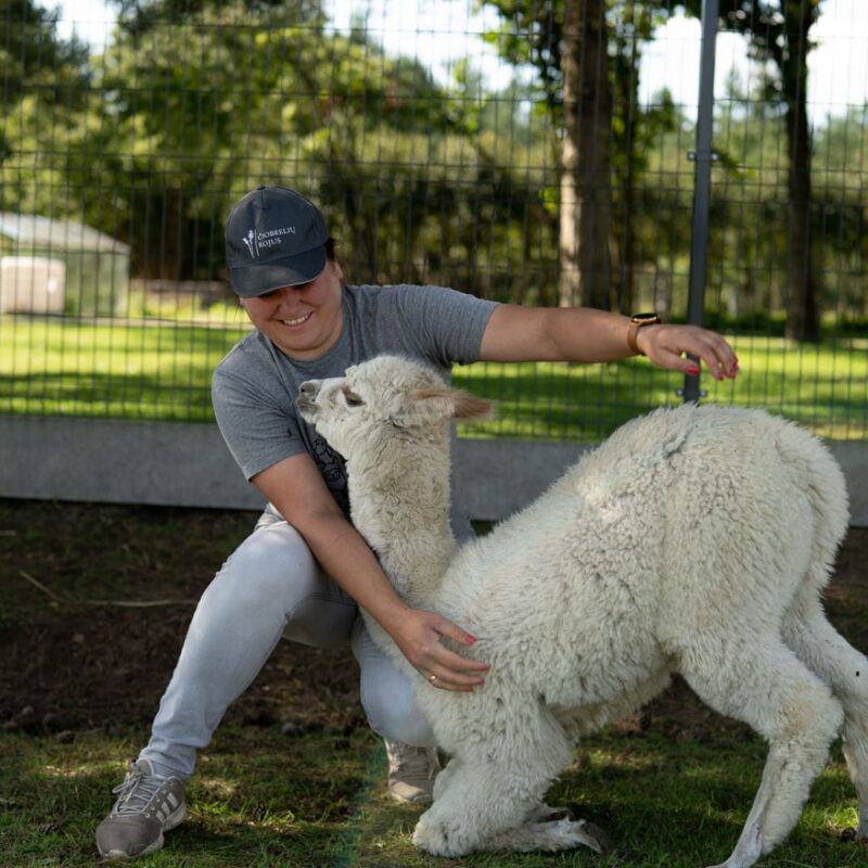 Jei oro sąlygos bus prastos, su alpakomis bendrausime jų namuose.