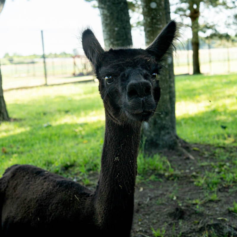 Kūku is pretty young alpaca. She is curious and very friendly – she gets along very well with farm dogs! Kūku came to our farm together with Leila, so their connection is very special. This alpaca got her name because of the first sound she heard after her birth – it was a cuckoo song!