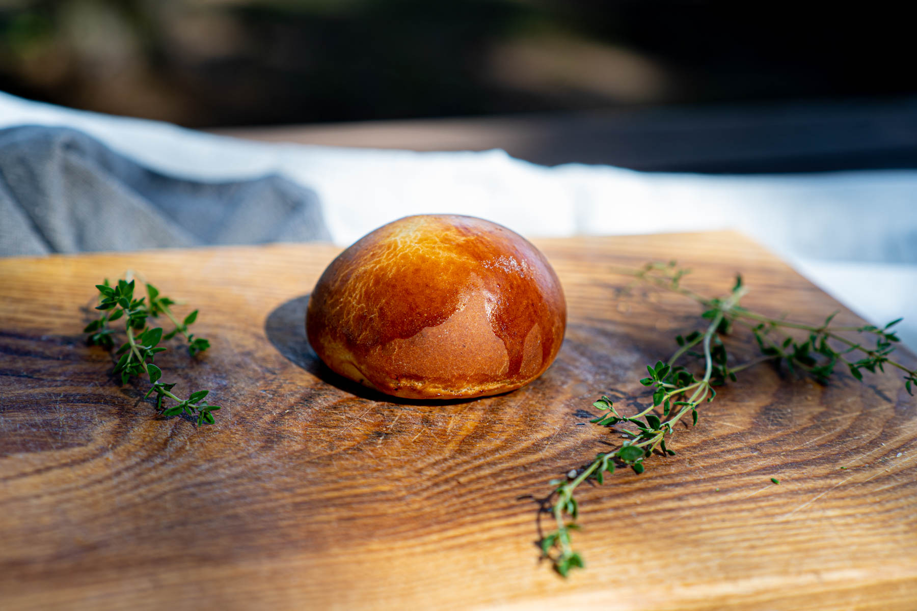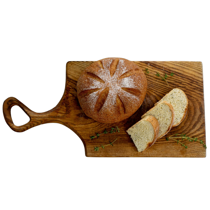 Pateikiama su firmine Čiobrelių rojaus duona.