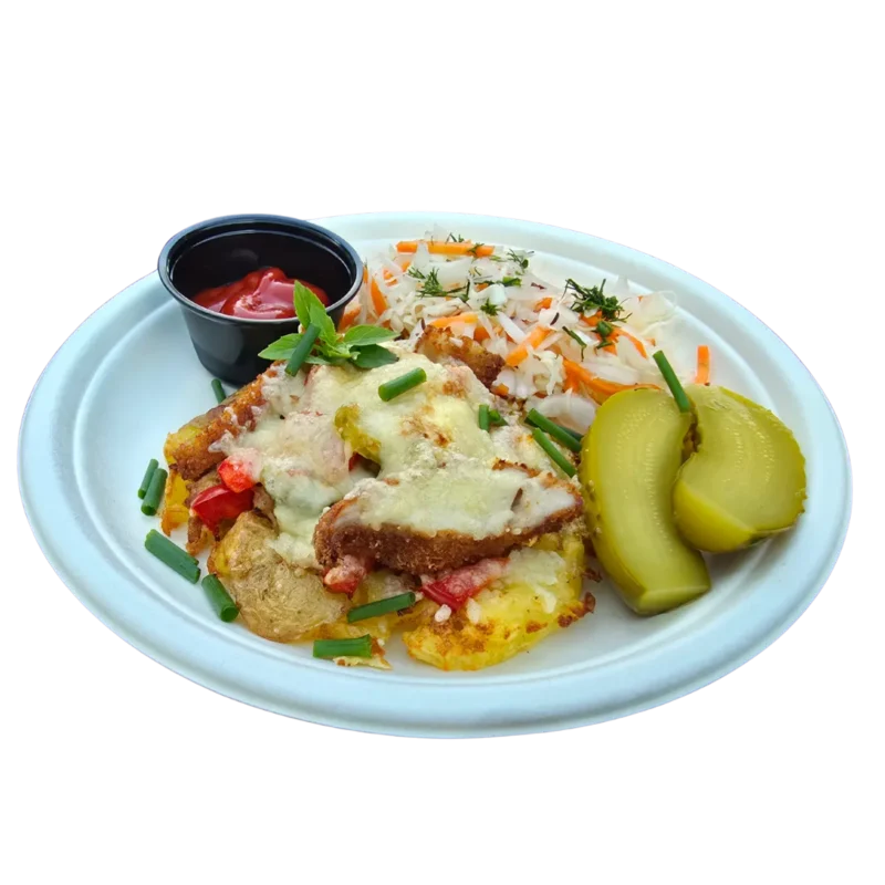 Padažas pasirinktinai: grietinė, spirgučiai arba grybų padažas.